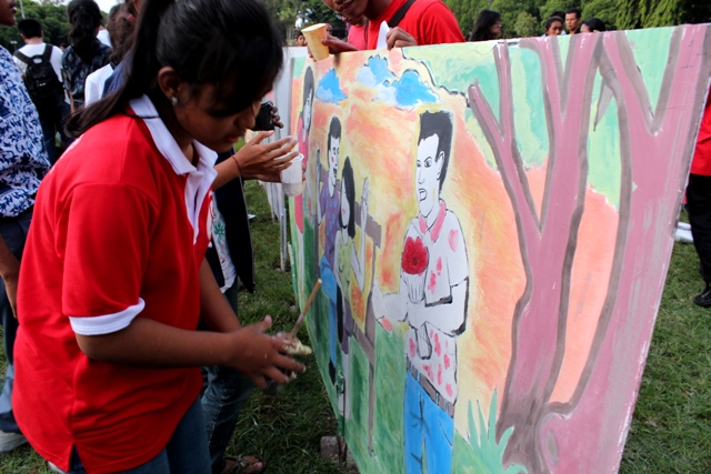 Suasana semakin seru ketika waktu 180 menit yang diberikan panitia akan segera habis. Para peserta saling mempercantik warna di gambar mural mereka agar menarik minat masyarakat yang ada di sekitar area kampanye untuk datang sebanyak-banyaknya.